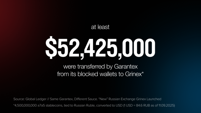 In August 2025, the U.S. Treasury’s Office of Foreign Assets Control (OFAC) expanded sanctions against Garantex’s successors – Grinex, Exved, InDeFi Bank – and its executives: Sergey Mendeleev, Aleksandr Mira Serda, and Pavel Karavatsky. Garantex itself was re-designated under the U.S. cyber-related sanctions program. Within days, the UK announced sanctions aimed at Garantex’s successor networks, highlighting token A7A5, which had moved roughly $9.3 billion on the exchange in just four months. Taken together, Washington and London signalled that enforcement now targets the broader Garantex ecosystem and its successor brands, not just the legacy exchange.